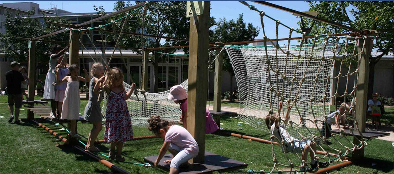 Ce parcours nomade est conçu avec des matériaux naturels pour plonger les enfants dans un univers chaleureux et authentique. Il transforme en toute simplicité une aire de jeux en un espace d’aventure captivant.